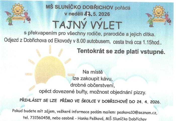 Úvod > Pro občany > Aktuality > Tajný výlet s MŠ SLUNÍČKO DOBŘICHOV